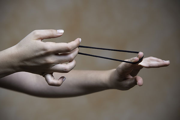 When you stretch or compress a rubber band, the kinetic energy, which is what you use to compress or stretch the band, gets converted into potential energy. And when you release the band back to its original shape, the potential energy converts back into kinetic energy.